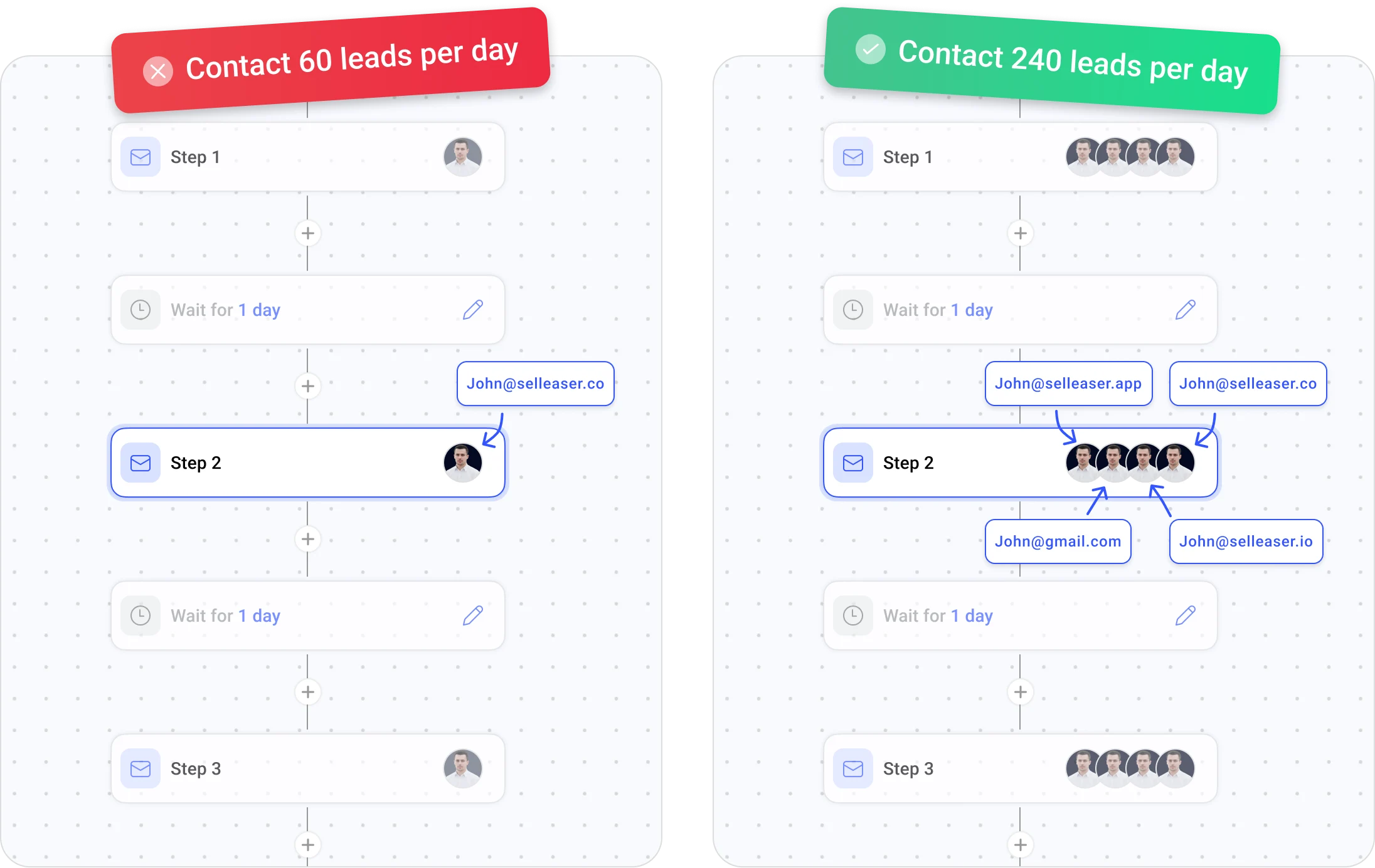 Connect several email accounts — More mailboxes, more speed, and more reach. Send emails without worrying about spam or sending limits.