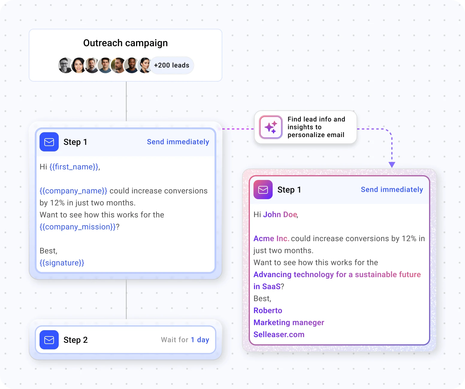 AI variables and enrichment auto-insert personalized details — so every email feels one-on-one, boosts engagement, and saves you time.