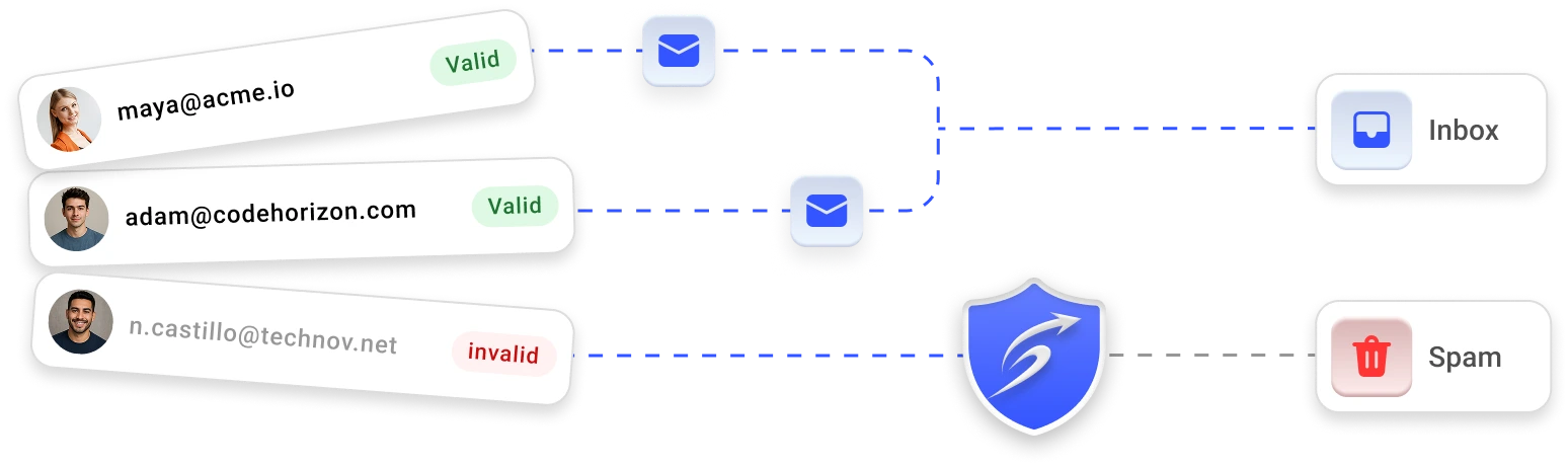 We automatically remove invalid, risky, and disposable emails — so every message lands in a real inbox.