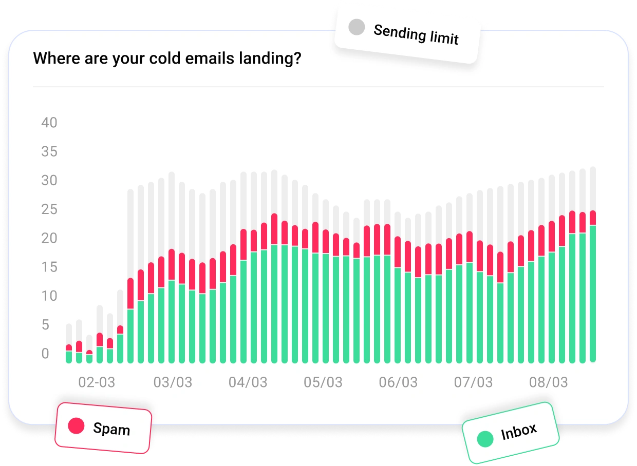 Automatically warm up your email accounts to build and maintain a strong sender reputation. Gradually increase sending volume while staying clear of spam — all without any manual effort.